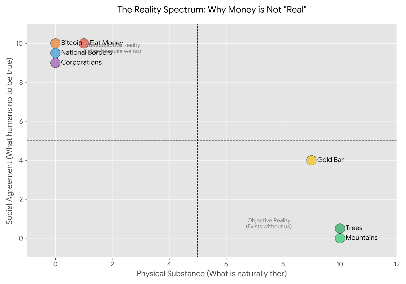 The idea that money is “real” in the same way as a tree or oxygen is a common misunderstanding of how human systems work. In reality, money is what sociologists and philosophers call an intersubjective reality.