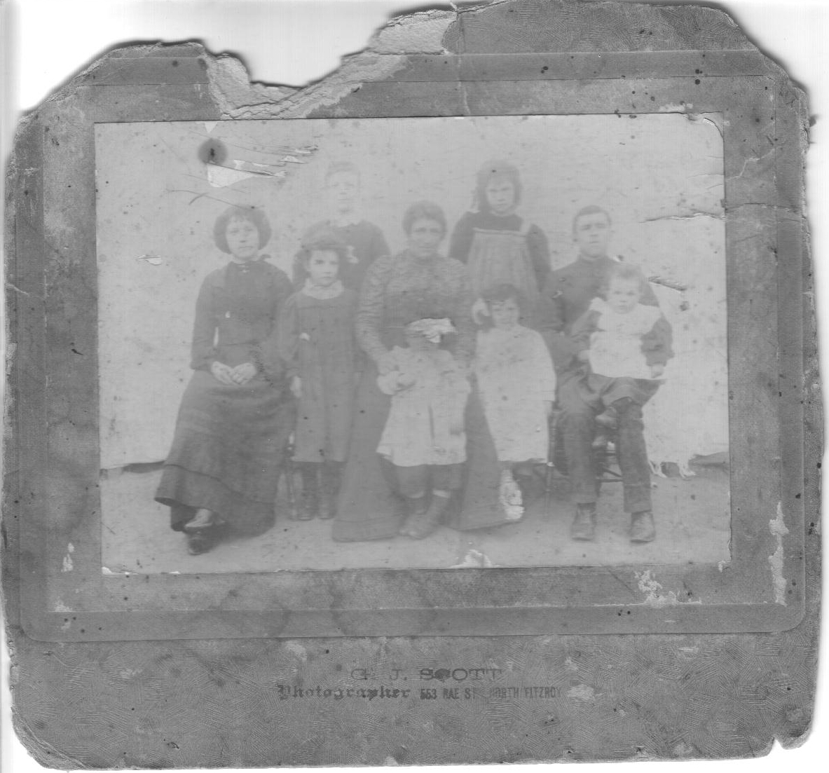 In the middle is Grandma Mosleys with I think Nan on her Knee. I would say the Man beside Grandma Mosleys is one of her husbands. The other are most likely Nan's siblings but I don't know who