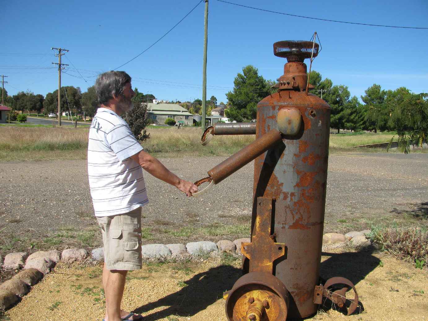 Grenfell old railway station Geoff Robot sculpture Mens shed