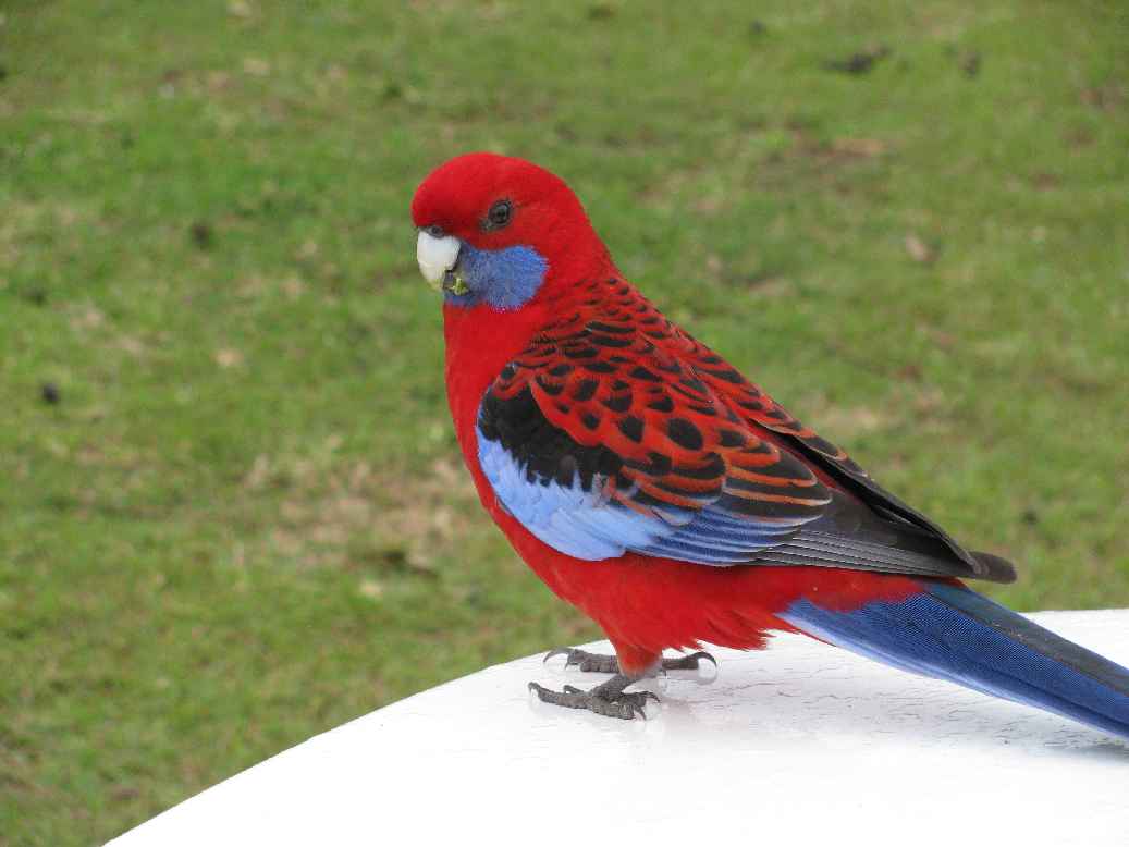 Lake Conjola near Ulladulla-Crimson Rosella on car at camp
