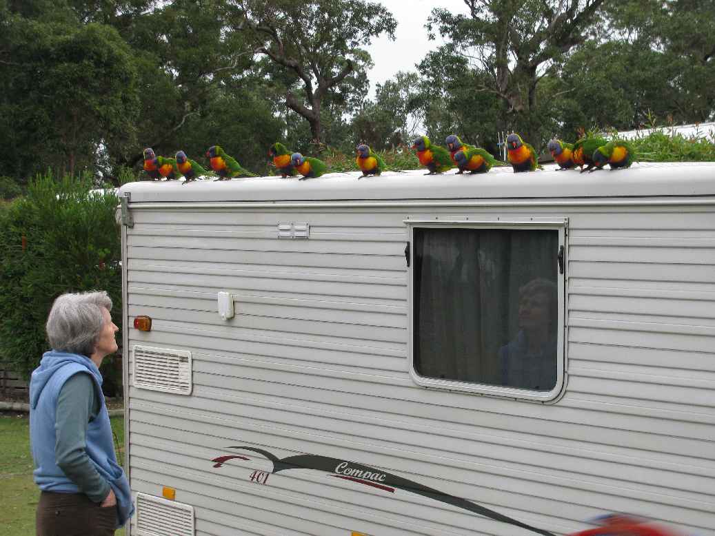 Lake Conjola near Ulladulla-Eastern Rosellas at camp - Marg