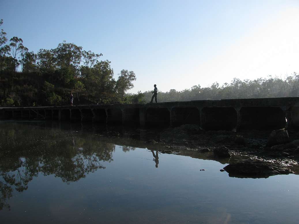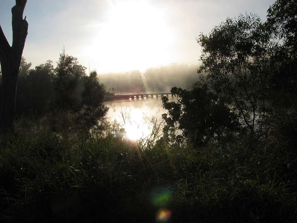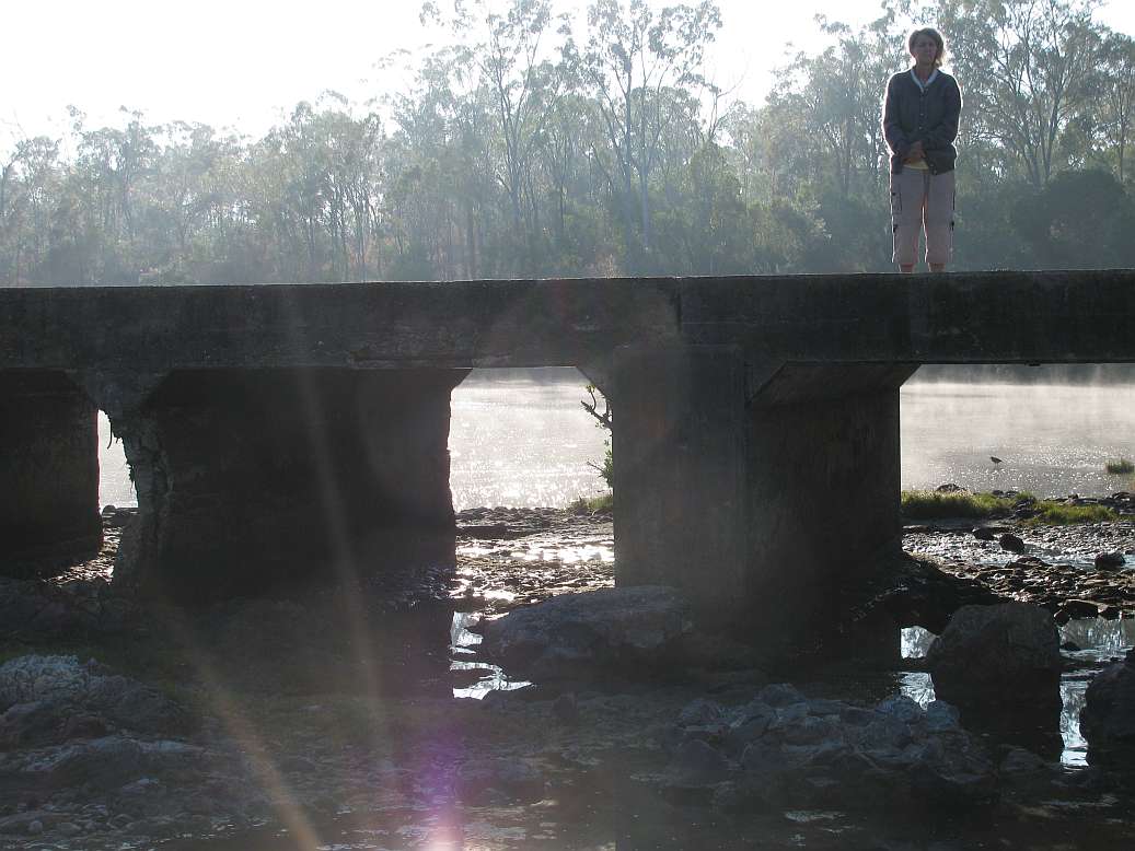 Calliope rest Area Morning fog on old Bridge