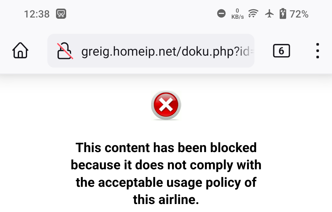 I was not able to create this page on our first flight from Brisbane to Singapore. I got this response: